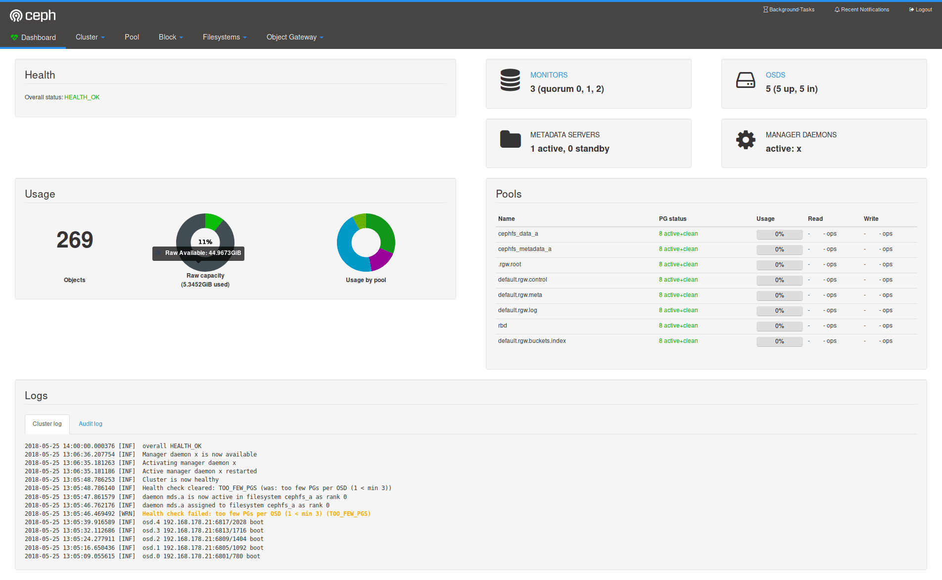 在过去六个月里,我和我的团队几乎全职致力于这个项目,所以可能不足为奇,我个人最喜欢 Mimic 版本的是新的 Ceph Manager Dashboard,又名“Dashboard v2”。