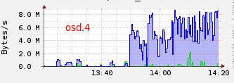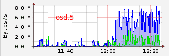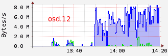 OSD 4 和 12 是 pg 3.143 和 3.ca 的主节点(参见 acting 表),而 OSD 6 正在写入。OSD 7 将从两个 PG 中释放,这两个 PG 都将被添加到 OSD 6。在我的例子中,osd 7 没有读取,因为它只是这两个 pg 的副本。