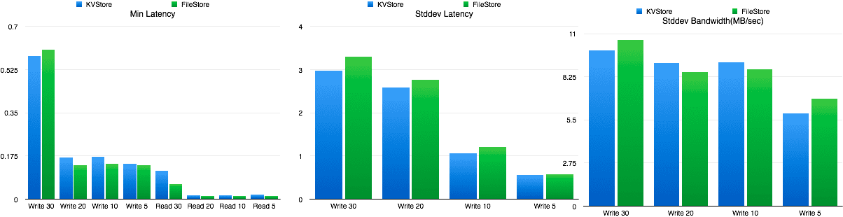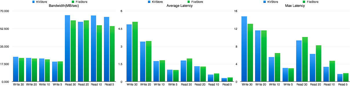 总体性能高于FileStore,差异不是很大,但请记住这目前只是一个原型。