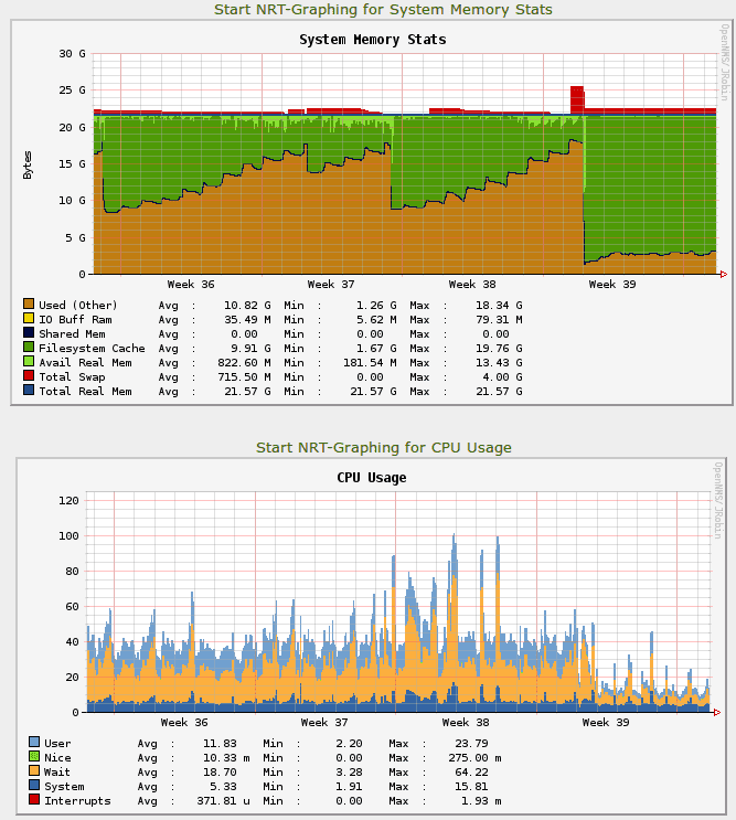 第二张图表显示了 Ceph OSD 的 CPU 使用情况。再次强调,升级改善了整体 CPU 利用率。