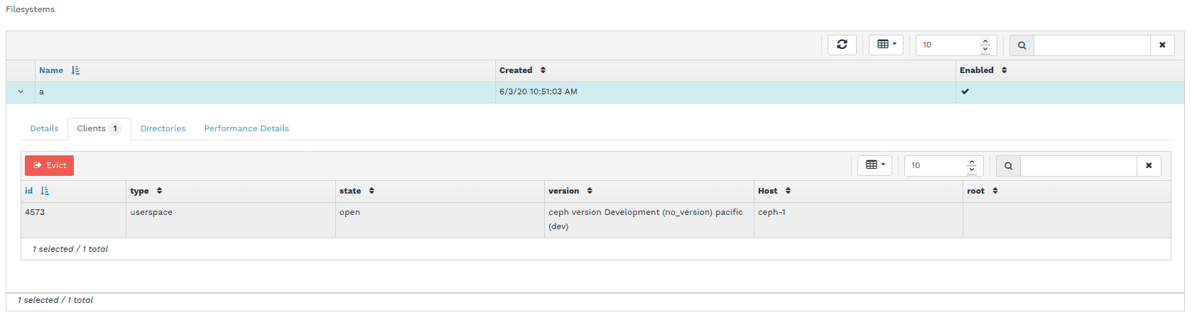 CephFS 管理页面也收到了一些新功能:现在可以断开或“驱逐”活动会话列表中的客户端,并手动创建 CephFS 子树的快照。