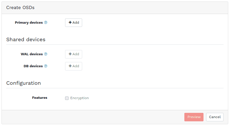 Ceph 仪表盘 - 创建 OSD 对话框