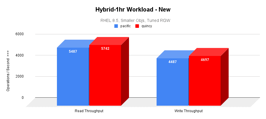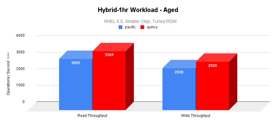 - 在混合 1 小时老化工作负载中,Quincy 的性能比 Pacific 高出 15%。