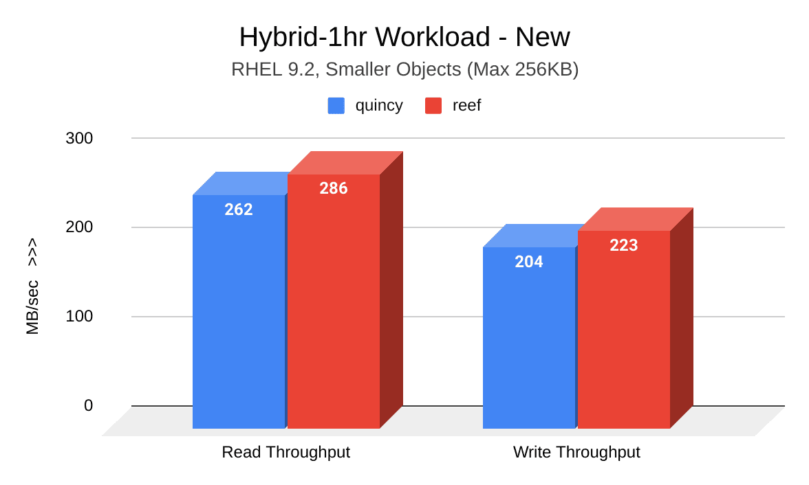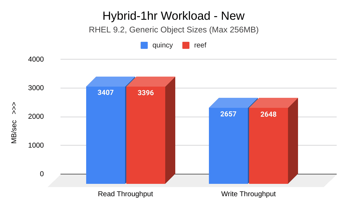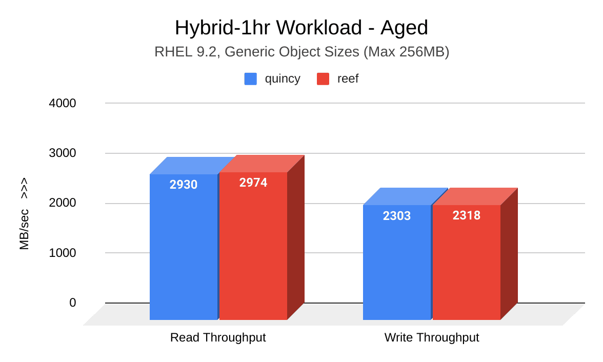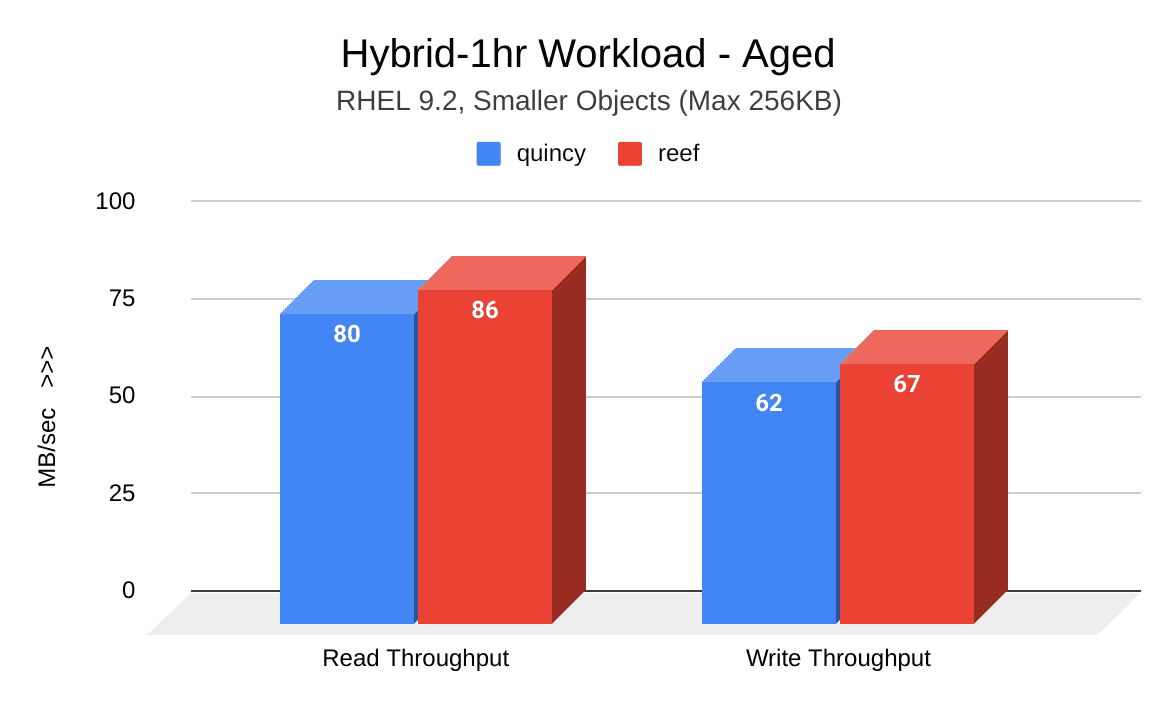 在此测试周期中执行的集群填充和老化工作负载显示出Reef的吞吐量有了显著提高。