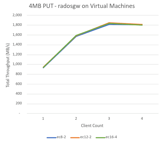 由于 OSD 节点是单插槽机器,我们的起始策略是使用虚拟机来托管 RGW 守护进程,从而尽可能多地将 CPU 用于 60 个 OSD 守护进程。验证此设计决策是我们的下一个“站点”。