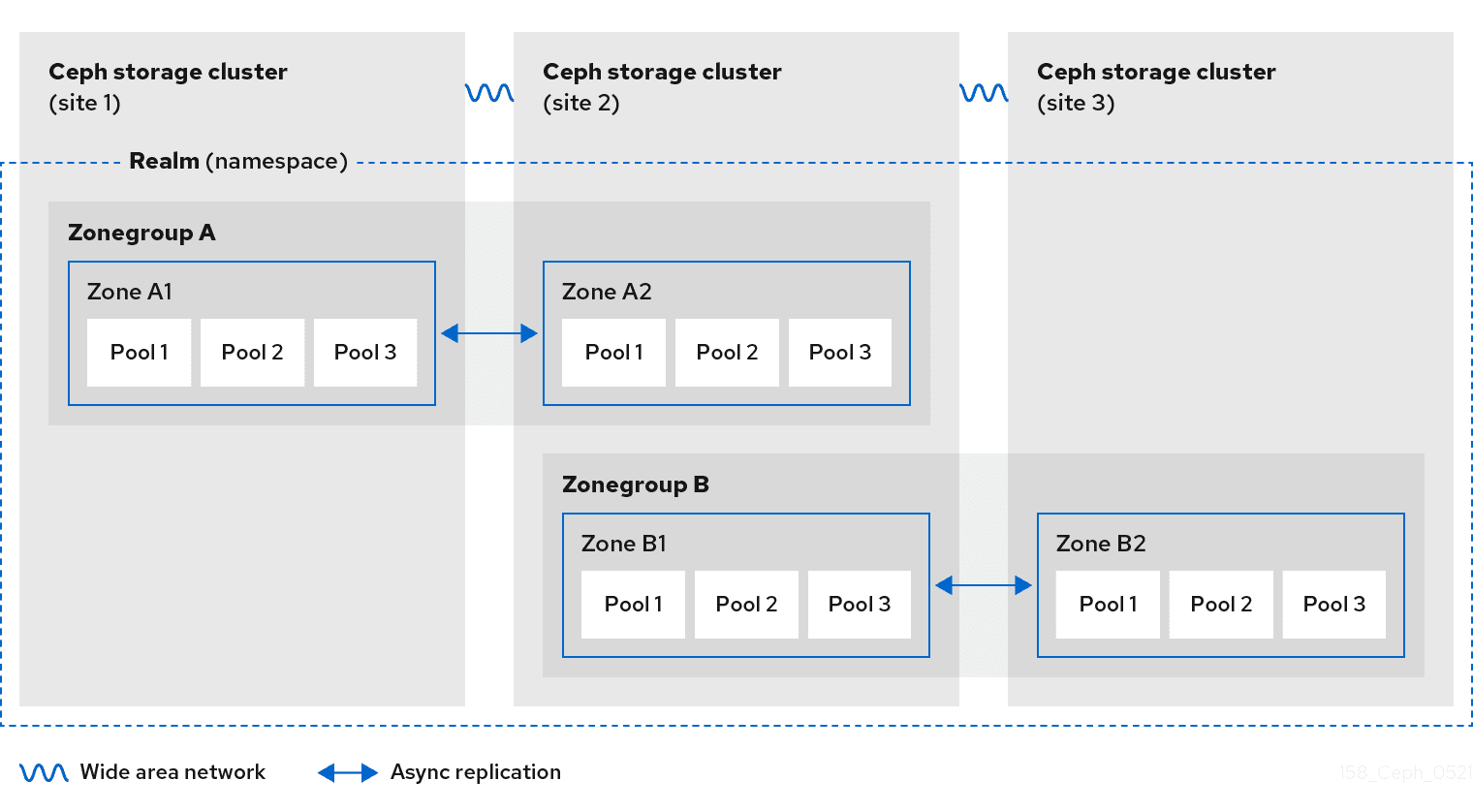 Ceph 对象存储多站点集群由领域、区域组和区域组成