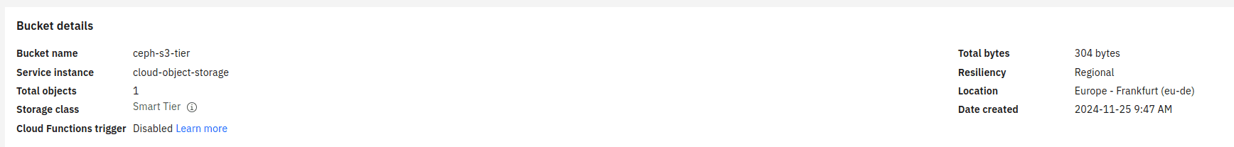 # aws --profile tiering --endpoint https://s3.cephlabs.com s3api put-bucket-lifecycle-configuration --lifecycle-configuration file://ibm-cos-lc.json --bucket databucket