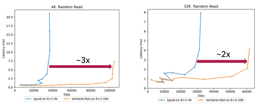 这意味着在 Tentacle 中,使用快速 EC,您现在可以选择使用更高的 K 值,以便获得更好的容量利用率,而不会出现 Squid 中看到的性能下降。